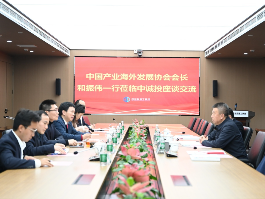 中國(guó)產(chǎn)業(yè)海外發(fā)展協(xié)會(huì)會(huì)長(zhǎng)和振偉一行蒞臨中誠(chéng)投建工集團(tuán)